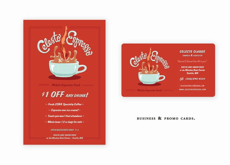Client : Celeste Clark, fun loving roaster starting her own craft coffee shop in red 50's milk truck.